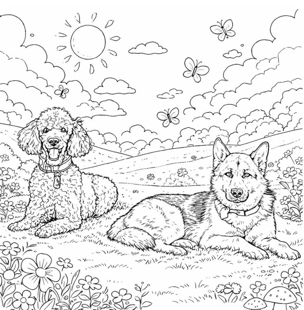 Fun printable coloring pages inspired by The Poodle and the Shepherd.